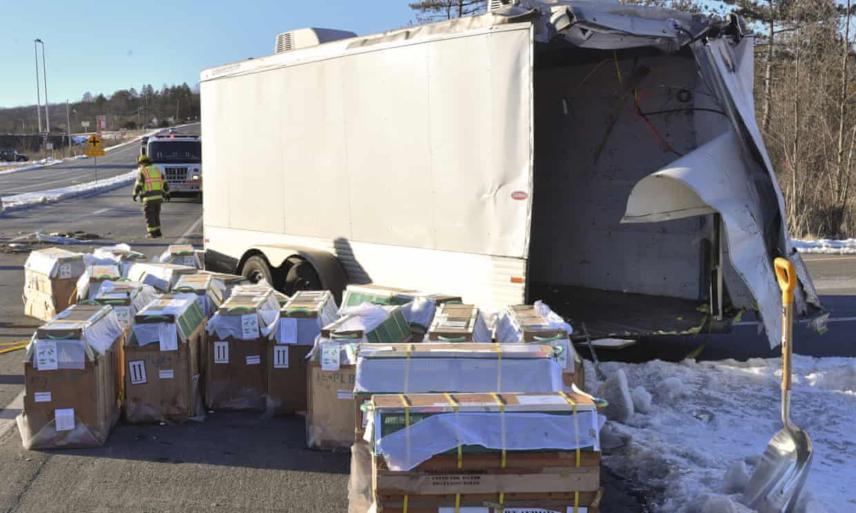The truck had been on its way to a lab, a state trooper, Andrea Pelachick, told the Daily Item newspaper of Sunbury.